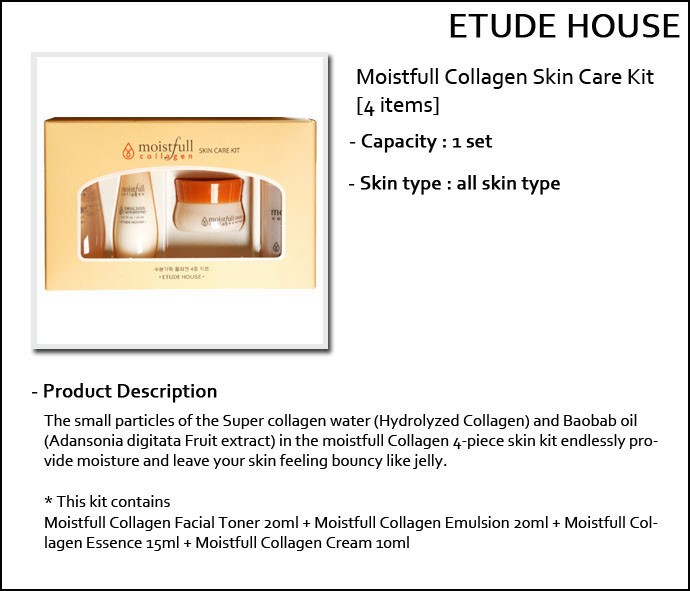 Download Etude House Moistfull Collagen Collections 130 results for etude house moistfull collagen cream. Find great deals on ebay for etude house moistfull collagen cream. () hydrolyzed collagen (63.4%), butylene glycol, cyclopentasiloxane, glycerin, cyclohexasiloxane, glyceryl polymethacrylate, hydrogenated lecithin, cetearyl alcohol, adansonia digitata fruit extract. Etude house moistfull collagen eye cream. Moistfull collagen's hydration formula for healthy skin super collagen water fully delivers hydration to make your skin bouncy and dewy.white lupin keeps your skin mositurized.fresh, lightweight yet moisturizing texture. Free shipping worldwide and sign up today to earn $3 credit.