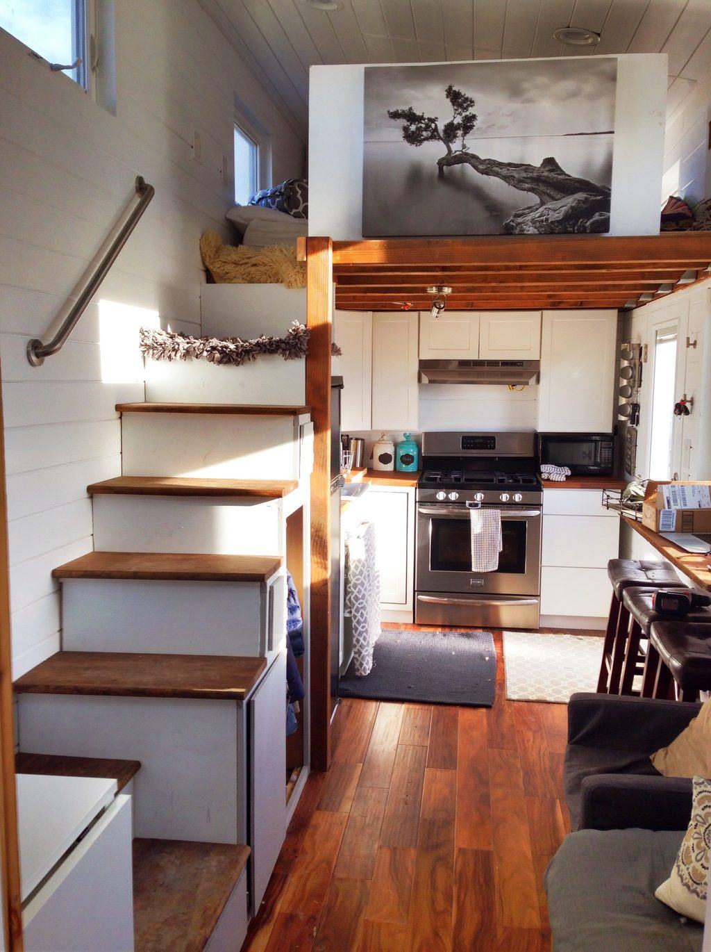 The loft shown here is the first of two lofts in this tiny house.